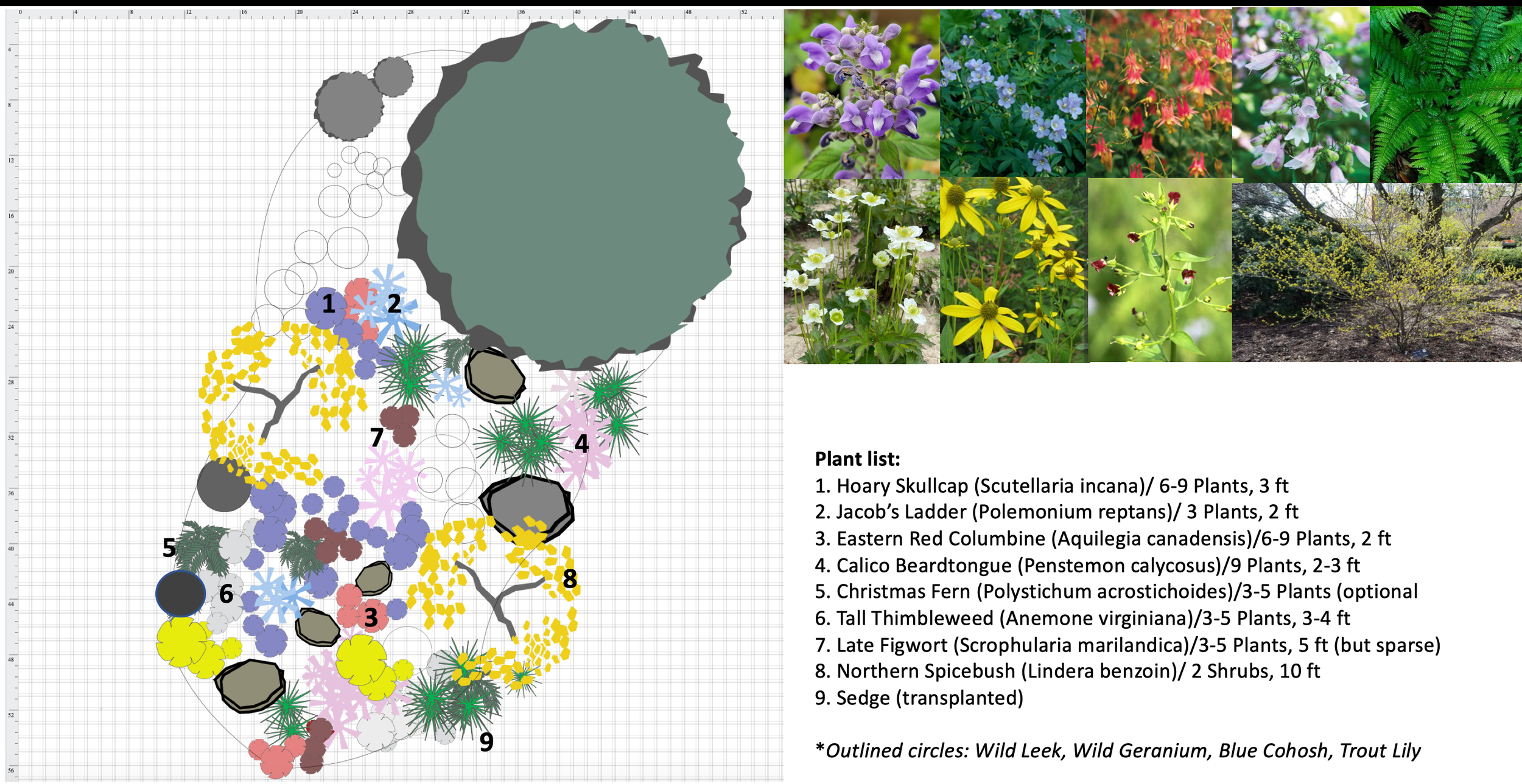 The following are a few examples of our creative vision. Each garden begins with a to-scale design that matches site conditions and includes a breakdown of the quantity of plants needed as well as site prep procedures. We offer most of the plants that we suggest and recommend alternative vendors if something is sold out.
